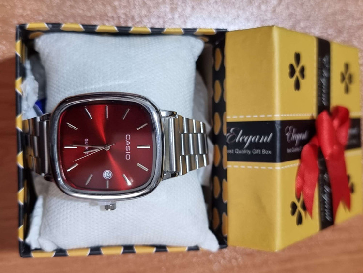 ساعت مچی برند کاسیو مدل اولدمانی (Old Money) های کپی با طراحی کلاسیک و بند فلزی نقرهای، انتخابی شیک و اقتصادی برای استایل روزمره و رسمی است. صفحهی قرمز این ساعت جلوهای خاص و متفاوت به دست شما میدهد و استایل شما را خاصتر میکند. این ساعت با موتور کوارتز (باتریخور) و نمایشگر تاریخ، ترکیبی از زیبایی، کاربردی بودن و قیمت مناسب را فراهم کرده است.