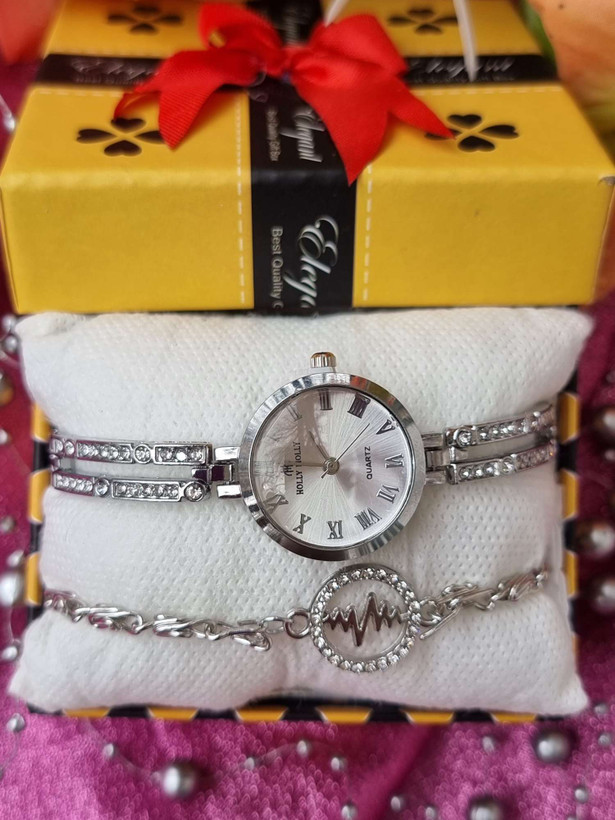 ست ساعت و دستبند HOLLY MOLLY رنگ نقره ای کد ۱۷.