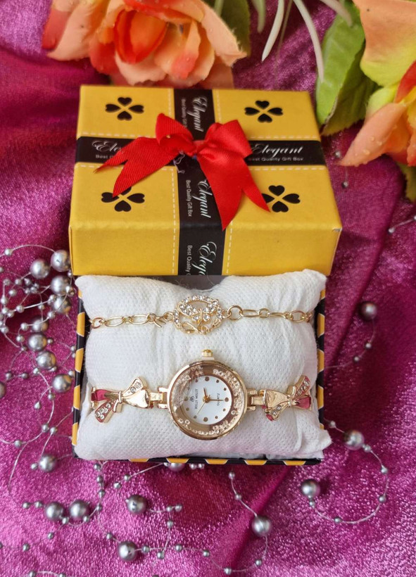 عنوان محصول: ست هدیه ساعت مچی زنانه و دستبند نگیندار (طرح کلاسیک مجلسی)