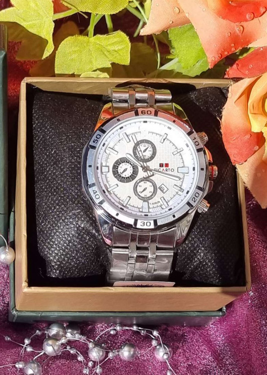 ساعت مچی مردانه **TICARTO** با طراحی کرنوگراف و فرم بدنهی قدرتمند، انتخابی ایدهآل برای آقایانی است که به **ظاهر شیک، ابعاد درشت و حس سنگینی ساعت روی دست** اهمیت میدهند. این مدل بهویژه برای افرادی با **مچ دست پهن** طراحی شده و جلوهای کاملاً مردانه و چشمگیر ایجاد میکند.