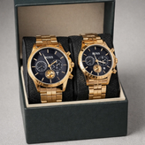 بدنه و بند هر دو ساعت از **استیل ضدزنگ 316** ساخته شده و به **موتور کوارتز شرکتی دقیق** مجهز هستند. **شیشه کریستال معدنی**، **قفل پروانهای** و استاندارد **IP67** (مقاوم در برابر پاشش آب و شستوشوی دست) دوام و کارایی این ست را در استفاده روزمره تضمین میکند.