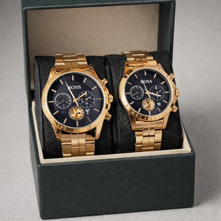 ست ساعت **BOSS مدل 90465** شامل **دو عدد ساعت (یک مردانه و یک زنانه)** با طراحی هماهنگ و الهامگرفته از سبک **CITIZEN VIP** است؛ انتخابی شیک برای زوجها، هدیههای خاص و استفاده روزمره یا رسمی. ترکیب نمایش **آنالوگ و دیجیتال** در کنار طراحی پریمیوم، ظاهری مدرن و حرفهای ایجاد میکند.