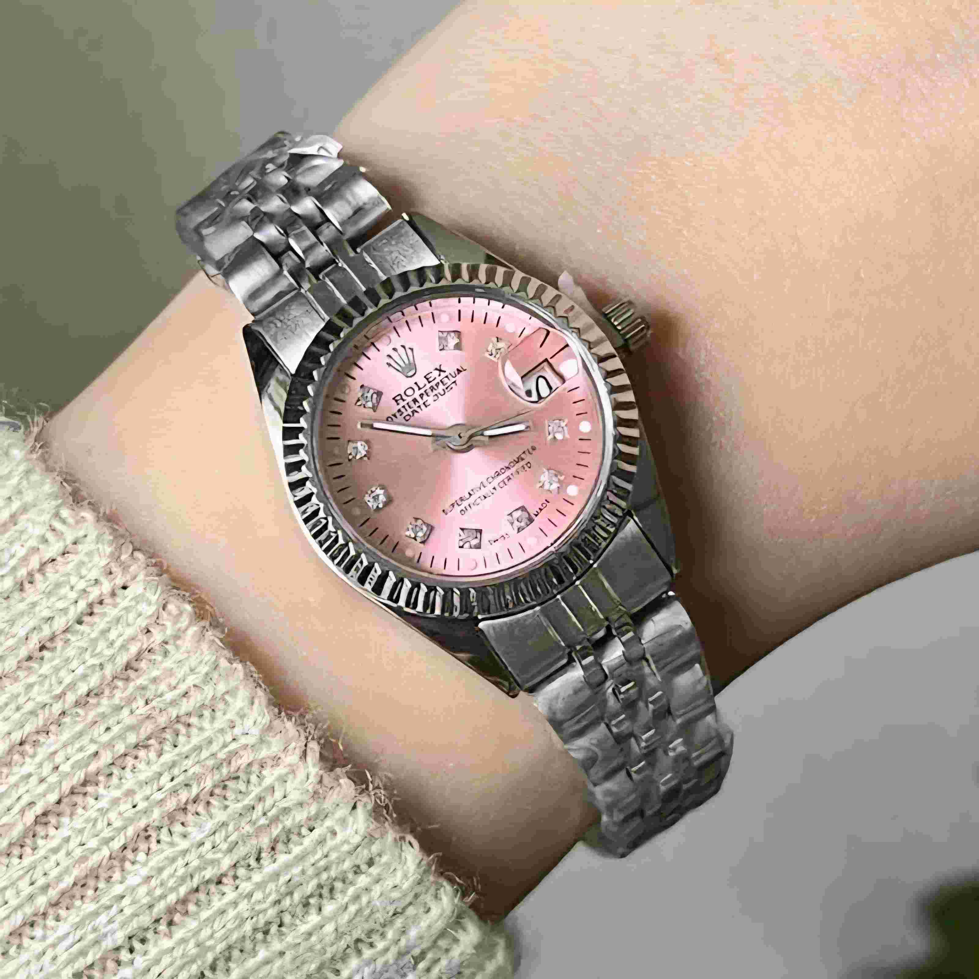ساعت مچی زنانه صفحه صورتی برند رولکس