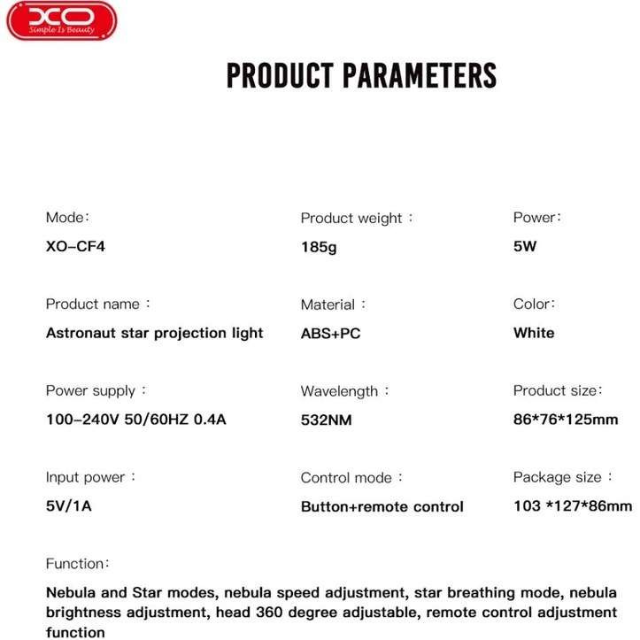 چراغ خواب کهکشانی فضانورد نشسته مدل CF4 برند XO