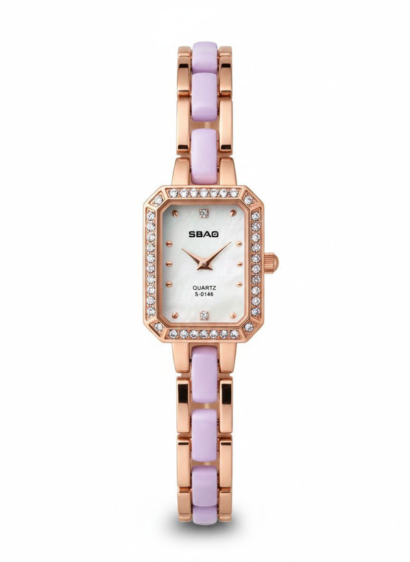 ساعت زنانه **SBAO** با طراحی ظریف و شیک خود، انتخابی ایدهآل برای خانمهایی است که بهدنبال یک اکسسوری متفاوت و چشمگیر هستند. قاب نگیندار در کنار بند دورنگ رزگلد و صورتی سرامیکی ، جلوهای لوکس و منحصربهفرد ایجاد کرده و این مدل را مناسب استایلهای رسمی و روزمره میسازد.