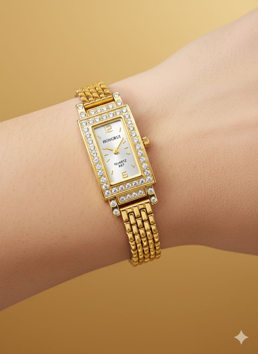 **ساعت مچی زنانه HONGRUI – ظرافتی درخشان با طراحی خاص**